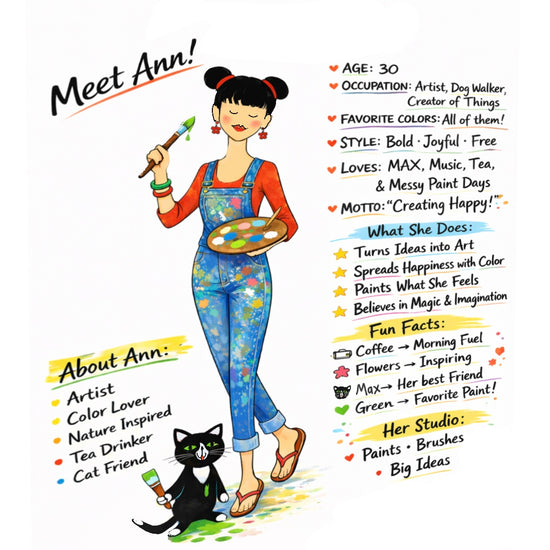 Ann paints, daydreams, and believes happiness can be made with a little color and a lot of heart. She follows her imagination, dreams big, and creates joy wherever she goes.